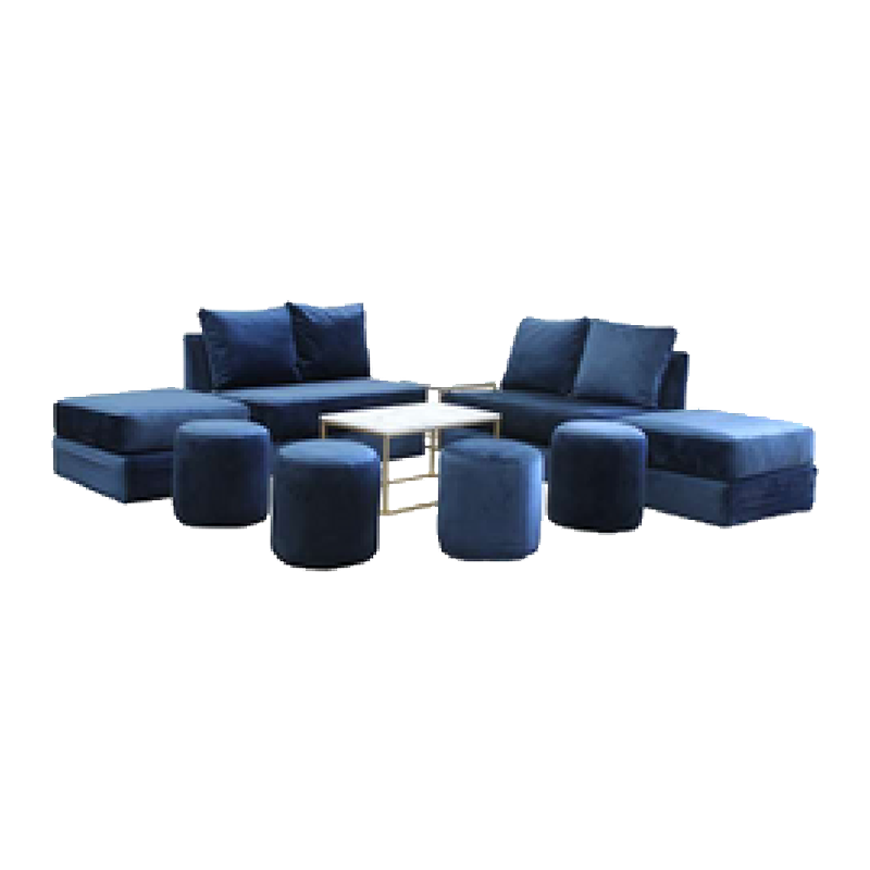 Sala Lounge en tono azul para 10 personas, no incluye mesa de centro.