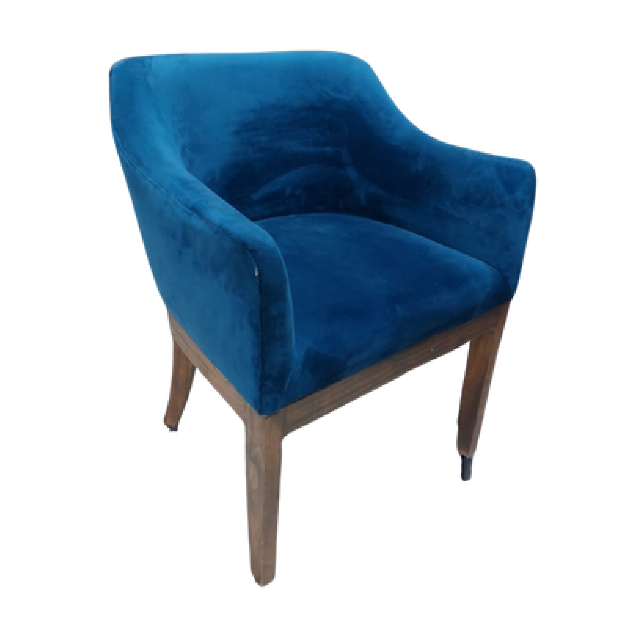 Sillón Azul rey de terciopelo Zanthe. Sillón individual con patas de madera forrado en tela de terciopelo tono azul marino.
